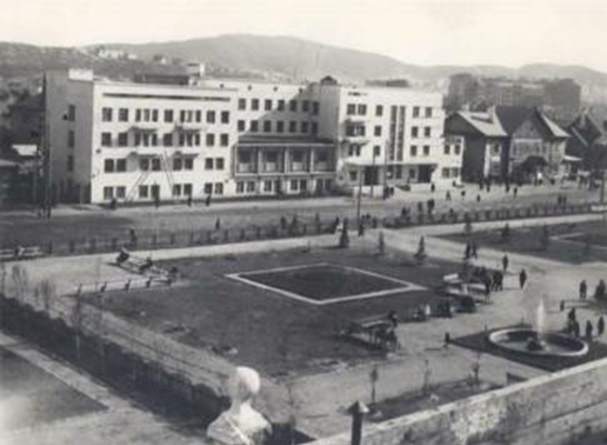1935 г. Внешний вид сквера. На заднем плане гостиница «Арктика». Архивное фото.